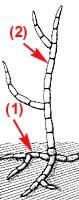 Il se compose de deux parties formées de filaments (l'une ou l'autre pouvant régresser) constitués de cellules disposées en files pouvant se ramifiées :